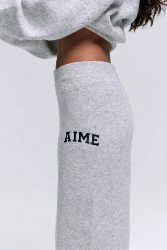 Chest Varsity Oversized Knit sweatshirt & Bottoms- Light Grey